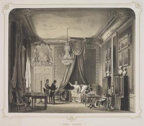 | Keywords: Sängkammarregementet.jpg sv Förlaga till litografin är en målning av Carl Stefan Bennet från 1830-talet i Kungl slottet Karl XIV Johan sätt att arbeta i och regera från sängkammaren kom att benämnas Sängkammarregementet http //app ub uu se/epub/bildsok/bibrecord cfm bibid 3935 Creator Carl Stefan Bennet 1843 <gallery> File Sängkammarregementet crop jpg File Karl Johan konfererer med embetsmenn fra sengen i sitt sove-og arbeidsværelse på Stockholms slott - Norsk Folkemuseum - NF 1915-0138 jpg </gallery> PD-old-100-1923 Stockholm in the 1830s Karl XIV Johans sängkammare Overdoors in Sweden Carl Stefan Bennet |