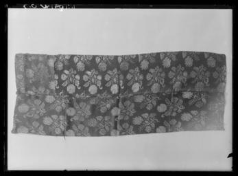 | Keywords: Sängomhänge, Torpa stenhus - Livrustkammaren - 19058.tif LSH artwork sv Del av sängomhänge till stolpsäng Sängomhänget består av fyra våder De två yttre och en av mittvåderna är i benvitt siden med invävt mönster i form av stiliserade blommor i geometriska former Den andra mittvåden är av svart sidenatlas med invävda blomsterkvistar i gul cerise vit och grön silke Överst är den svarta våden lappad med en remsa i samma tyg Vit vådbredd ytterst 465 mm i mitten 225 mm Svart vådbredd 500 mm <br/>Franskant runt om långsidorna och nedre kortsidan av svart beige och vit silke bredd 18 mm <br/>Längs överkanten elva metallringar av vilka nio är av gul grövre metall med raka kanter Två är av vit metall Fästa med beigefärgat garn eller beige/svarta sidenband original caption silk Färg benvit vit d1 - dräkt - yttermaterial material siden - silk Färg svart gul cerise vit grön d1 - dräkt - yttermaterial material sidenatlas - silk Färg svart beige vit d4 - dräkt - passpoaler band kantning uppslag material silkesfrans - metal Färg gul vit d5 - dräkt - knappar och spännen material metall - yarn Färg beige d5 - dräkt - knappar och spännen material garn - silk Färg beige svart d5 - dräkt - knappar och spännen material sidenband g 560 size mm 1720 1690 LRK Himmelssängar place of origin original filename LN_B16492_019372 56192 inventory number LRK 19612 19058 CC0 Sängomhänge Torpa stenhus - Livrustkammaren - 19058-negative tif <gallery caption Different images of same object > File Sängomhänge Torpa stenhus - Livrustkammaren - 44739 tif File Sängomhänge Torpa stenhus - Livrustkammaren - 10496 tif File Sängomhänge Torpa stenhus - Livrustkammaren - 61861 tif File Sängomhänge Torpa stenhus - Livrustkammaren - 36181 tif File Sängomhänge Torpa stenhus - Livrustkammaren - 53300 tif File Sängomhänge Torpa stenhus - Livrustkammaren - 78982 tif File Sängomhänge Torpa stenhus - Livrustkammaren - 70423 tif File Sängomhänge Torpa stenhus - Livrustkammaren - 27620 tif </gallery> Media contributed by LSH without any categories Media contributed by LSH unmatched objKeyword Media contributed by LSH 2014-11 |