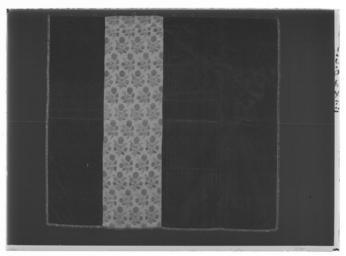 | Keywords: Sängomhänge, Torpa stenhus - Livrustkammaren - 44739-negative.tif LSH artwork sv Del av sängomhänge till stolpsäng Sängomhänget består av fyra våder De två yttre och en av mittvåderna är i benvitt siden med invävt mönster i form av stiliserade blommor i geometriska former Den andra mittvåden är av svart sidenatlas med invävda blomsterkvistar i gul cerise vit och grön silke Överst är den svarta våden lappad med en remsa i samma tyg Vit vådbredd ytterst 465 mm i mitten 225 mm Svart vådbredd 500 mm <br/>Franskant runt om långsidorna och nedre kortsidan av svart beige och vit silke bredd 18 mm <br/>Längs överkanten elva metallringar av vilka nio är av gul grövre metall med raka kanter Två är av vit metall Fästa med beigefärgat garn eller beige/svarta sidenband original caption silk Färg benvit vit d1 - dräkt - yttermaterial material siden - silk Färg svart gul cerise vit grön d1 - dräkt - yttermaterial material sidenatlas - silk Färg svart beige vit d4 - dräkt - passpoaler band kantning uppslag material silkesfrans - metal Färg gul vit d5 - dräkt - knappar och spännen material metall - yarn Färg beige d5 - dräkt - knappar och spännen material garn - silk Färg beige svart d5 - dräkt - knappar och spännen material sidenband g 560 size mm 1720 1690 LRK Himmelssängar place of origin original filename LN_B16495_019375 56192 inventory number LRK 19612 44739 CC0 Sängomhänge Torpa stenhus - Livrustkammaren - 44739 tif <gallery caption Different images of same object > File Sängomhänge Torpa stenhus - Livrustkammaren - 78982 tif File Sängomhänge Torpa stenhus - Livrustkammaren - 10496 tif File Sängomhänge Torpa stenhus - Livrustkammaren - 61861 tif File Sängomhänge Torpa stenhus - Livrustkammaren - 36181 tif File Sängomhänge Torpa stenhus - Livrustkammaren - 53300 tif File Sängomhänge Torpa stenhus - Livrustkammaren - 19058 tif File Sängomhänge Torpa stenhus - Livrustkammaren - 70423 tif File Sängomhänge Torpa stenhus - Livrustkammaren - 27620 tif </gallery> |