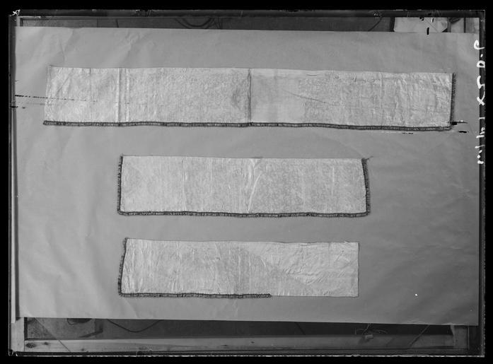 | Keywords: Sängomhänge, Torpa stenhus - Livrustkammaren - 70423.tif LSH artwork sv Del av sängomhänge till stolpsäng Sängomhänget består av fyra våder De två yttre och en av mittvåderna är i benvitt siden med invävt mönster i form av stiliserade blommor i geometriska former Den andra mittvåden är av svart sidenatlas med invävda blomsterkvistar i gul cerise vit och grön silke Överst är den svarta våden lappad med en remsa i samma tyg Vit vådbredd ytterst 465 mm i mitten 225 mm Svart vådbredd 500 mm <br/>Franskant runt om långsidorna och nedre kortsidan av svart beige och vit silke bredd 18 mm <br/>Längs överkanten elva metallringar av vilka nio är av gul grövre metall med raka kanter Två är av vit metall Fästa med beigefärgat garn eller beige/svarta sidenband original caption silk Färg benvit vit d1 - dräkt - yttermaterial material siden - silk Färg svart gul cerise vit grön d1 - dräkt - yttermaterial material sidenatlas - silk Färg svart beige vit d4 - dräkt - passpoaler band kantning uppslag material silkesfrans - metal Färg gul vit d5 - dräkt - knappar och spännen material metall - yarn Färg beige d5 - dräkt - knappar och spännen material garn - silk Färg beige svart d5 - dräkt - knappar och spännen material sidenband g 560 size mm 1720 1690 LRK Himmelssängar place of origin original filename LN_B16498_019378 56192 inventory number LRK 19612 70423 CC0 Sängomhänge Torpa stenhus - Livrustkammaren - 70423-negative tif <gallery caption Different images of same object > File Sängomhänge Torpa stenhus - Livrustkammaren - 44739 tif File Sängomhänge Torpa stenhus - Livrustkammaren - 10496 tif File Sängomhänge Torpa stenhus - Livrustkammaren - 61861 tif File Sängomhänge Torpa stenhus - Livrustkammaren - 36181 tif File Sängomhänge Torpa stenhus - Livrustkammaren - 53300 tif File Sängomhänge Torpa stenhus - Livrustkammaren - 19058 tif File Sängomhänge Torpa stenhus - Livrustkammaren - 78982 tif File Sängomhänge Torpa stenhus - Livrustkammaren - 27620 tif </gallery> Media contributed by LSH without any categories Media contributed by LSH unmatched objKeyword Media contributed by LSH 2014-11 |