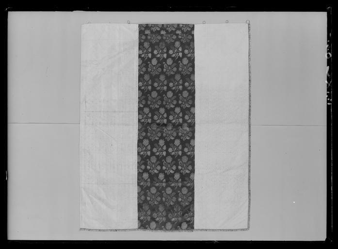 | Keywords: Sängomhänge, Torpa stenhus - Livrustkammaren - 78982.tif LSH artwork sv Del av sängomhänge till stolpsäng Sängomhänget består av fyra våder De två yttre och en av mittvåderna är i benvitt siden med invävt mönster i form av stiliserade blommor i geometriska former Den andra mittvåden är av svart sidenatlas med invävda blomsterkvistar i gul cerise vit och grön silke Överst är den svarta våden lappad med en remsa i samma tyg Vit vådbredd ytterst 465 mm i mitten 225 mm Svart vådbredd 500 mm <br/>Franskant runt om långsidorna och nedre kortsidan av svart beige och vit silke bredd 18 mm <br/>Längs överkanten elva metallringar av vilka nio är av gul grövre metall med raka kanter Två är av vit metall Fästa med beigefärgat garn eller beige/svarta sidenband original caption silk Färg benvit vit d1 - dräkt - yttermaterial material siden - silk Färg svart gul cerise vit grön d1 - dräkt - yttermaterial material sidenatlas - silk Färg svart beige vit d4 - dräkt - passpoaler band kantning uppslag material silkesfrans - metal Färg gul vit d5 - dräkt - knappar och spännen material metall - yarn Färg beige d5 - dräkt - knappar och spännen material garn - silk Färg beige svart d5 - dräkt - knappar och spännen material sidenband g 560 size mm 1720 1690 LRK Himmelssängar place of origin original filename LN_B16499_019379 56192 inventory number LRK 19612 78982 CC0 Sängomhänge Torpa stenhus - Livrustkammaren - 78982-negative tif <gallery caption Different images of same object > File Sängomhänge Torpa stenhus - Livrustkammaren - 44739 tif File Sängomhänge Torpa stenhus - Livrustkammaren - 10496 tif File Sängomhänge Torpa stenhus - Livrustkammaren - 61861 tif File Sängomhänge Torpa stenhus - Livrustkammaren - 36181 tif File Sängomhänge Torpa stenhus - Livrustkammaren - 53300 tif File Sängomhänge Torpa stenhus - Livrustkammaren - 19058 tif File Sängomhänge Torpa stenhus - Livrustkammaren - 70423 tif File Sängomhänge Torpa stenhus - Livrustkammaren - 27620 tif </gallery> Media contributed by LSH without any categories Media contributed by LSH unmatched objKeyword Media contributed by LSH 2014-11 |