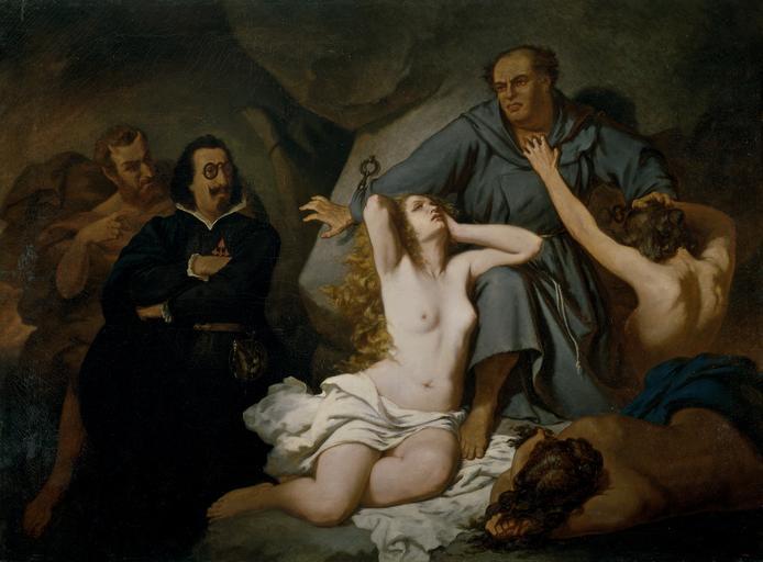 | Keywords: Sans Cabot Lutero Sueño del infierno de Quevedo.jpg Francisco de Quevedo que aparece en el lienzo también aparecen dos mujeres desnudas a los pies del reformador protestante Martín Lutero 1858 Oil on canvas cm 173 129 Institution Museo del Prado https //www museodelprado es/coleccion/galeria-on-line/galeria-on-line/obra/lutero-asunto-tomado-de-un-sueno-del-infierno-de-quevedo/ PD-old-100 other versions Uploaded with UploadWizard Francisco de Quevedo in art Paintings of Martin Luther Francisco Sans Cabot Spanish 19th-century paintings in the Museo del Prado 1858 paintings |