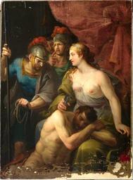 | Keywords: Sansón y Dalila, atribuido a José Camarón y Meliá (Real Academia de Bellas Artes de San Fernando).jpg La obra representa a Sansón dormido y a su amante filistea Dalila junto a los hombres que debían apresar al primero Último cuarto del siglo XVIII oil on canvas Size cm 73 100 Institution Real Academia de Bellas Artes de San Fernando http //ceres mcu es/pages/Main accession number 0166 http //ceres mcu es/pages/Main PD-old-100 Paintings of Samson and Delilah Paintings by José Camarón y Meliá in the Royal Academy of Fine Arts of San Fernando 18th-century paintings in the Royal Academy of Fine Arts of San Fernando |
