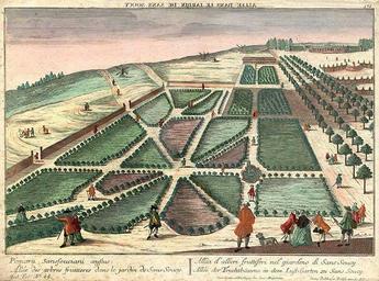 | Keywords: Sanssouci Fruchtbäume.jpg Allée der Fruchtbäume in dem Lust-Garten zu Sans Soucy Coloured engraving Image dimensions 10 3/4 x 16 inches Allée des arbres fruitiers dans le jardin de Sans Soucy Alléa d'alberi fruttiferi nel giardino di Sans Soucy http //www donaldheald com/ Georg Balthasar Probst 1731-1801 um 1747-1749 PD-old-100 Georg Balthasar Probst 1673-1748 History of Sanssouci Potsdam in the 18th century | ||||