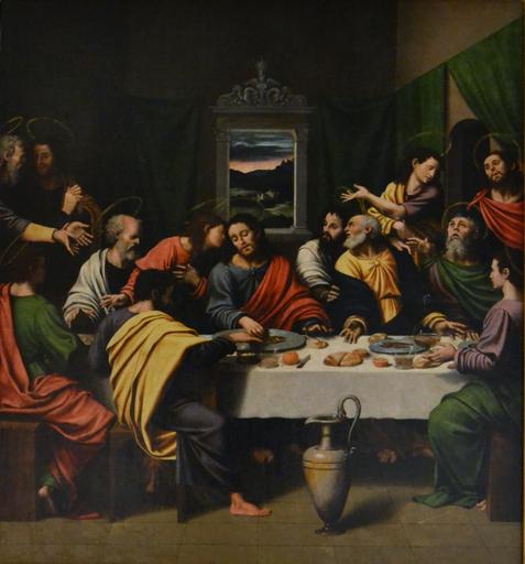 Keywords: Sant Sopar de Joan de Joanes, Museu de Belles Arts de València.JPG La obra muestra a Jesucristo y a sus doce apóstoles cenando en la víspera de la pasión y muerte del Salvador ca Sant Sopar de Joan de Joanes oli sobre taula Museu de Belles Arts de València Joan de Joanes va pintar des de molt jove en col·laboració amb son pare i aquesta és la primera obra de la qual consta que és un treball exclusivament seu Va pertànyer al retaule que els argenters de València van dedicar al seu patró sant Eloi a la parròquia de santa Caterina El pintor tradueix en imatges el moment en què Crist anuncia als seus deixebles que un d'ells el trairà mereix especial atenció el tractament naturalista dels elements del bodegó Siglo XVI oil on panel Size cm 84 92 Institution Museo de Bellas Artes de Valencia http //museobellasartesvalencia gva es/index php option com_content view article id 603 3Asanta-cena catid 54 3Arenacimiento-pleno Itemid 80 lang es object history exhibition history credit line accession number 305 own PD-old-100 cc-by-sa-3 0 Santa Cena de Joan de Joanes Museu de Belles Arts de València |