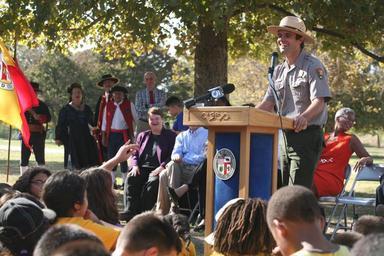 | Keywords: every kid in a park everykidinapark findyourpark juan bautista de anza national historic trail juanbautistadeanzanationalhistorictrail santa monica mountains national recreation area santamonicamountainsnationalrecreationarea los angeles losangeles san fernando valley sanfernandovalley anthony c. beilenson park anthonycbeilensonpark department of interior departmentofinterior outdoor Mayor Eric Garcetti, County Supervisor Sheila Kuehl, and members of the City Council helped kick of the L.A. launch of the Every Kid in a Park program on October 15, 2015 near Santa Monica Mountains National Recreation Area. Nearly 500 local 4th-graders participated in educational activities and were rewarded with a Junior Ranger badge and a free annual pass to all federal lands. Photo credit: National Park Service. Mayor Eric Garcetti, County Supervisor Sheila Kuehl, and members of the City Council helped kick of the L.A. launch of the Every Kid in a Park program on October 15, 2015 near Santa Monica Mountains National Recreation Area. Nearly 500 local 4th-graders participated in educational activities and were rewarded with a Junior Ranger badge and a free annual pass to all federal lands. Photo credit: National Park Service. |