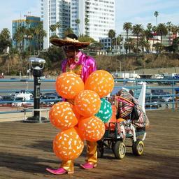 Keywords: santa monica pier street vendor balloons sombrero clown