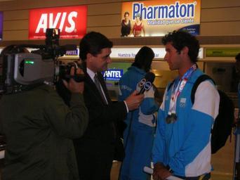 | Keywords: Santiagoemenese.JPG es Foto tomada al deportista en el aeropuerto internacional de carrasco entrevistado luego de regresar de los juegos odesur 2010 con las medallas de plata own Matthuujudok 1/01/2010 Rowers from Uruguay Interviews in Uruguay |