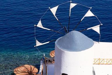 Keywords: santorini island windmill village sea ocean seascape mediterranean architecture travel tourism greece town house