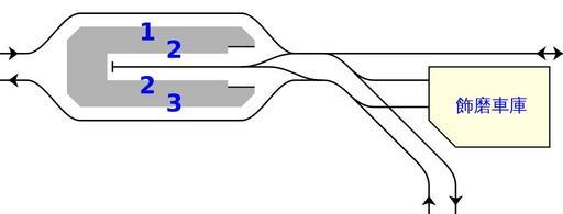 | Keywords: Sanyo Shikama station track map.svg en Track map of Sanyo Electric Railway Shikama station in Himeji Hyogo Japan ja 山陽電鉄飾磨駅配線略図 黒田康夫 永山敏行 山陽特集 近年における輸 と運転の動向 鉄道ピクトリアル 2001年12 増刊 電気車研究会 20頁に基づく Own Matsukaze Rail track diagrams of train stations in Japan Shikama Station |