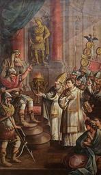 | Keywords: São Vicente e São Valério perante Daciano (1768) - António Fernandes Rodrigues.png en Saint Vincent and Saint Valerius before Dacian 1768 by António Fernandes Rodrigues Currently on the Monastery of St Vincent Outside the Walls Lisbon Portugal pt São Vicente e São Valério perante Daciano 1768 por António Fernandes Rodrigues Actualmente no Mosteiro de São Vicente de Fora Lisboa Portugal 1768 https //www academia edu/3424060/Transitoriedade_e_Perman C3 AAncia_a_Pintura_em_S _Vicente_de_Fora SALDANHA Nuno 2010 Transitoriedade e Permanência a Pintura em S Vicente de Fora Mosteiro de S Vicente de Fora Arte e História Centro Cultural do Patriarcado de Lisboa António Fernandes Rodrigues other versions Custom license marker 2016 11 26 PD-old-100 António Fernandes Rodrigues 1768 paintings 1760s paintings from Portugal 18th-century religious paintings in Portugal 18th-century paintings of Vincent of Saragossa Paintings of San Valero |