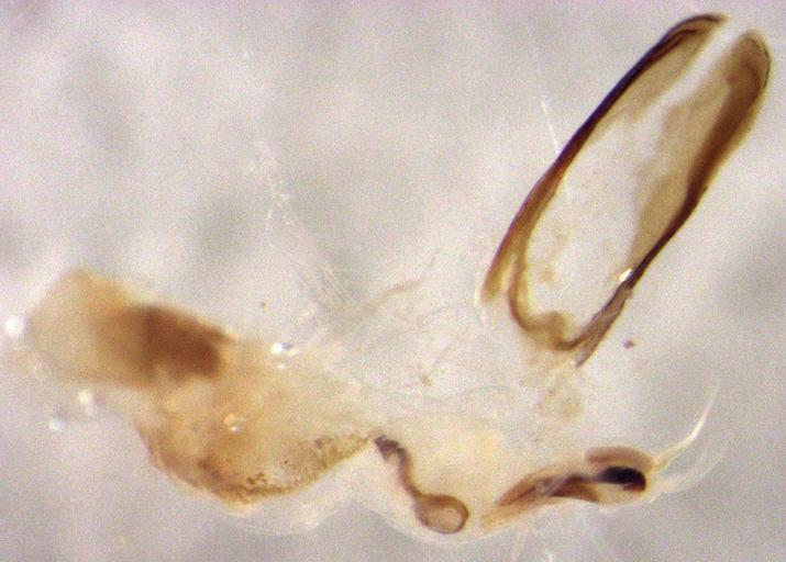 Keywords: Saphobius fulvipes (internal sac).jpg en Saphobius fulvipes internal sac dissected out of aedeagus photo taken by me S E Thorpe 2012-11-14 NEW ZEALAND WO Maungatautari South cell inside cell transect 1 pitfall trap F 18 Dec 2011 - 20 Jan 2012 C H Watts Saphobius fulvipes |
