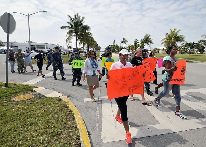 Keywords: SAPR march 140424-N-YB753-037.jpg en Naval Air Station Key West Sailors and civilians participate in a Sexual Assault Prevention and Response march starting at the Key West Chief Petty Officer Association Mess parking lot NAS Key West is a state-of-the-art facility for air-to-air combat fighter aircraft of all military services and provides world-class pierside support to U S and foreign naval vessels U S Navy photo by Mass Communication Specialist 2nd Class Brian Morales/ Released 2014-04-24 Petty Officer 2nd Class Brian Morales https //www dvidshub net/image/1280680 140424-N-YB753-037 2014-04-28 09 01 KEY WEST FL US PD-USGov-Military-Navy Naval Air Station Key West Images from DoD uploaded by Fæ |