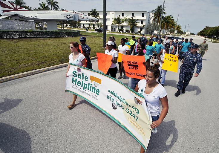 Keywords: SAPR march 140424-N-YB753-057.jpg en Naval Air Station Key West Sexual Assault Prevention and Response Victim Advocates Machinist's Mate 1st Class Juliana Gomez left from Armenia Colombia and Aviation Boatswain's Mate Handling 2nd Class Michelle Ocon-Hernandez from San Antonio lead a SAPR march around Boca Chica Field NAS Key West is a state-of-the-art facility for air-to-air combat fighter aircraft of all military services and provides world-class pierside support to U S and foreign naval vessels U S Navy photo by Mass Communication Specialist 2nd Class Brian Morales/ Released 2014-04-24 Petty Officer 2nd Class Brian Morales https //www dvidshub net/image/1280686 140424-N-YB753-057 2014-04-28 09 03 KEY WEST FL US PD-USGov-Military-Navy Naval Air Station Key West Images from DoD uploaded by Fæ |