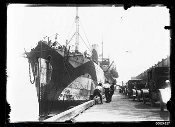 | Keywords: peninsular and oriental steam navigation company peninsularandorientalsteamnavigationcompany p & o line poline samuel j hood collection samueljhoodcollection hood collection hoodcollection dazzle paint dazzlepaint camouflage war troopship sardinia world war i worldwari wwi razzle dazzle razzledazzle dazzle camouflage dazzlecamouflage monochrome blackandwhite photo border outdoor black and white Troop transport SARDINIA in dazzle camouflage paint at a wharf during World War I. This photo is part of the Australian National Maritime Museum’s Samuel J. Hood Studio collection. Sam Hood (1872-1953) was a Sydney photographer with a passion for ships. His 60-year career spanned the romantic age of sail and two world wars. The photos in the collection were taken mainly in Sydney and Newcastle during the first half of the 20th century. The ANMM undertakes research and accepts public comments that enhance the information we hold about images in our collection. This record has been updated accordingly. Photographer: Samuel J. Hood Studio Collection Object no. 00024327 Troop transport SARDINIA in dazzle camouflage paint at a wharf during World War I. This photo is part of the Australian National Maritime Museum’s Samuel J. Hood Studio collection. Sam Hood (1872-1953) was a Sydney photographer with a passion for ships. His 60-year career spanned the romantic age of sail and two world wars. The photos in the collection were taken mainly in Sydney and Newcastle during the first half of the 20th century. The ANMM undertakes research and accepts public comments that enhance the information we hold about images in our collection. This record has been updated accordingly. Photographer: Samuel J. Hood Studio Collection Object no. 00024327 |