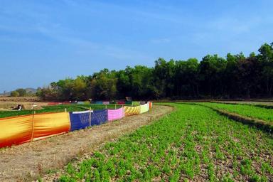 Keywords: saree fence sari saree fencing guarding crop crops colorful protection karnataka india