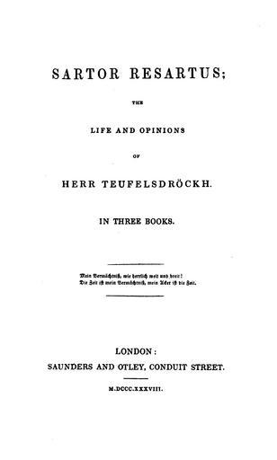 | Keywords: Sartor resartus 1838 London.jpg en Title-page of the first british edition of Sartor Resartus by Thomas Carlyle 1838 ru Титульный лист пе вого б итанского издания «Sartor Resartus» омана Томаса Ка лейля 1838 http //books google com/books id 3WsEAAAAQAAJ pg PR3 v twopage q f false Thomas Carlyle 1838 PD-Art 1838 books Thomas Carlyle |