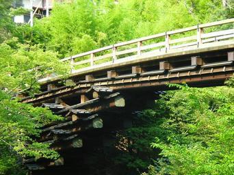 | Keywords: SaruHashi2005-8a.jpg Saru Bridge Ōtsuki Yamanashi Prefecture Japan 2005-08-05 own assumed Kinori ja 猿橋 位置 - 山梨 大 市 猿橋町猿橋 撮影日 - 2005年8 5日 撮影 - Kinori 日 に現存する唯 の刎橋 岩壁に差し込んだ刎ね で支えられる en Saru Bridge Place - Saruhashimachi-Saruhashi Ōtsuki Yamanashi prefecture Japan Date - August 5 2005 Photographer - Kinori Only one bridge of the hane type exists in Japan which is supported by timbers inserted to the rock cliff es el Puente Saru Lugar - Saruhashimachi-Saruhashi Ōtsuki la prefectura de Yamanashi Japón Fecha - Agosto 5 2005 Fotógrafo - Kinori Un solo puente exsitente del tipo hane en Japón que se suporta por las maderas insertadas en el precipicio Saru-hashi Footbridges Cantilever bridges in Japan |