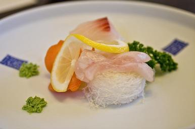 Keywords: sashimi wasabi lemon plate dining snacks sushi time japanese food