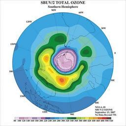| Keywords: Satellite Image of Ozone Hole in 2007.jpg en Ozone analysis map showing ozone hole over Antarctic continent Data obtained from a Solar Backscatter Ultraviolet SBUV/2 instrument on board the NOAA-18 weather satellite 2007-09-13 http //www photolib noaa gov/htmls/spac0539 htm National Oceanic Atmospheric Administration NOAA other versions NOAA In Space Collection image ID spac0539 PD-USGov Uploaded with UploadWizard Ozone layer Antarctic PD US NOAA | ||||