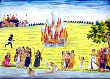 | Keywords: Sati ceremony.jpg en The pictures made by Indian artists for the British in India are called Company paintings This one depicts the practice of sati suttee or widow-burning The word is the Sanskrit for 'good woman' or 'true wife' It was applied to the Hindu widow who makes the supreme sacrifice by following her husband onto the funeral pyre Although suppressed in the 19th century isolated instances of sati still occur in India even today circa 1800 painted ca 1800 made http //collections vam ac uk/item/O15842/painting-sati-ceremony/ Unknown production PD-old-100 Uploaded with UploadWizard Sati Company style Art of India in the Victoria and Albert Museum |