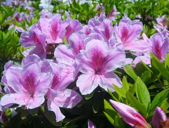 Keywords: satsuki may flowers pink red purple bud leaf green