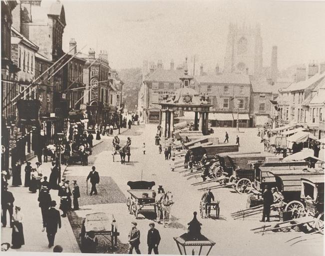 Keywords: Saturday Market with stalls, Beverley c.1900s ( archive ref DDX1075-1(b)) (30129994255).jpg en Saturday Market and the Butter Dings circa 1900 <br> Saturday Market showing a busy market day and the majority of business being transacted from carts rather than from stalls as it is today It houses not only the historic Market Cross but also the Butter Dings Flagstones on the eastern side <br> Formerly known as Bishop Dings they have been mentioned as early as 1282 and were considered to be the central part of Saturday Market in ancient times Butter Dings Flags are named after the country women in the market who used to stand selling butter from their baskets <br> <br> Why not try searching our <a href https //www flickr com/photos/erarchives/map > East Riding of Yorkshire Map</a> for more historic images <br> <a href https //www flickr com/photos/erarchives/map >www flickr com/photos/erarchives/map</a> <br> <br> Copyright We're happy for you to share this digital image within the spirit of Creative Commons <br> Please cite 'http //www2 eastriding gov uk/leisure/archives-family-and-local-history/ ' when reusing <br> Certain restrictions on high quality reproductions and commercial use of the original physical version apply If unsure please email archives service eastriding gov uk 2016-10-05 12 46 58 https //www flickr com/people/138361426 N08 East Riding Archives https //www flickr com/photos/erarchives/30129994255/ User Fæ/Flickr API Memories of Beverley beverley historic streets old photographs east riding yorkshire businesses saturday market Location 53 842817 -0 432492 Cc-zero East Riding Archives https //flickr com/photos/138361426 N08/30129994255 2016-11-03 10 51 11 cc-zero beverley riding yorkshire saturday Markets Photographs by East Riding Archives Photos uploaded from Flickr by Fæ using a script |