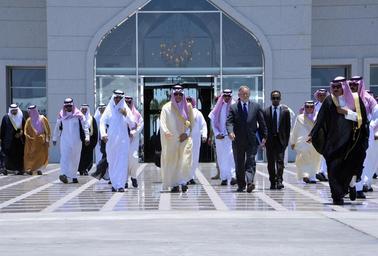 | Keywords: Saudi Foreign Minister al-Faisal and Ambassador Smith Walk to Meet Secretary Kerry.jpg en Saudi Foreign Minister Prince Saud al-Faisal accompanied by U S Ambassador to Saudi Arabia James Smith walks to greet U S Secretary of State John Kerry upon his arrival in Jeddah Saudi Arabia on June 25 2013 State Department photo/ Public Domain 2014-06-25 05 54 59 http //www flickr com/photos/statephotos/9136140386/sizes/o/in/photostream/ U S Department of State U S Department of State http //flickr com/photos/9364837 N06/9136140386 2013-06-25 16 51 59 United States Government Work PD-USGov Uploaded with UploadWizard Saud bin Faisal James B Smith |
