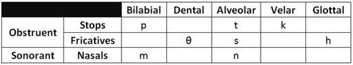 Keywords: Sauk Consonants.jpg en A chart of the consonants of the Sauk language 2011-10-26 own My-soma-holiday cc-zero Uploaded with UploadWizard Sac Phonology