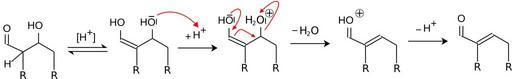 Keywords: Saure Aldolkondensation-Mechanismus.svg en acid catalysed aldol condensation mechanism de Mechanismus der säurekatalysierten Aldolkondensation own Matthias M 2009-06-16 Aldol condensation