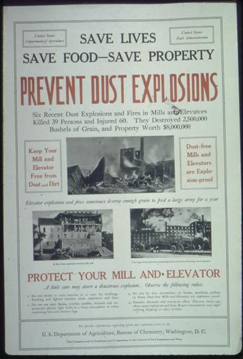 Keywords: "Save Lives, Save Food- Save Property. Prevent Dust Explosions...Keep your mill and elevator free from dust and dirt.... - NARA - 512690.tif Scope and content General notes 512690 Local identifier 4-P-252 U S Food Administration Educational Division Advertising Section 01/15/1918 - 01/1919 Still Picture Records Section Special Media Archives Services Division NWCS-S National Archives at College Park 8601 Adelphi Road College Park MD 20740-6001 other date circa 1917 1919 Record group Record Group 4 Records of the U S Food Administration 1917 - 1920 Record group ARC 333 World War I Posters compiled 1917 - 1919 Series ARC 512439 File unit File unit ARC Variant control numbers NAIL Control Number NWDNS-4-P-252 yes Other versions <gallery> File Save_Lives _Save_Food-_Save_Property _Prevent_Dust_Explosions Keep_your_mill_and_elevator_free_from_dust_and_dirt _-_NARA_-_512690 tif tif File Save_Lives _Save_Food-_Save_Property _Prevent_Dust_Explosions Keep_your_mill_and_elevator_free_from_dust_and_dirt _-_NARA_-_512690 jpg jpg </gallery> NARA-cooperation PD-USGov World War I posters of the United States Dust explosions NARA TIF images with categorized JPGs |