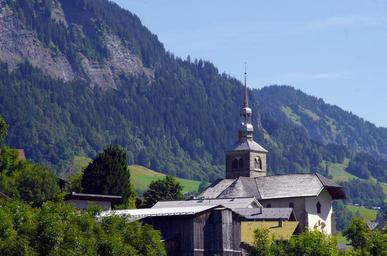Keywords: savoie alps saint-nicolas-la-chapel church village panorama mountain village landscape bell tower