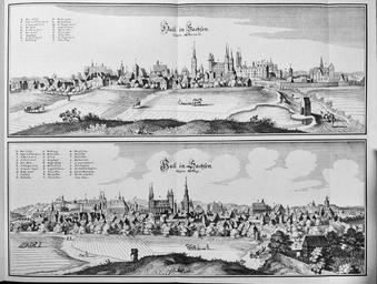| Keywords: Saxoniae Inferioris (Merian) b 015.jpg Artwork creator Matthäus Merian Halle Saale Sachsen-Anhalt Deutschland Oben von Süden; Unten von Norden b 1653 copper engraving object history exhibition history credit line de de accession number Topographia Saxoniae Inferioris Frankfurt am Main 1653 PD-100 Engravings of Topographia Saxoniae Inferioris Historic views of Halle Saale Topographia Saxoniae Inferioris Merian | ||||