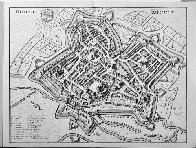 Keywords: Saxoniae Inferioris (Merian) b 019.jpg Artwork creator Matthäus Merian Stadtplan von Hildesheim Niedersachsen Deutschland b 1653 copper engraving object history exhibition history credit line la de accession number Topographia Saxoniae Inferioris Frankfurt am Main 1653 PD-100 Engravings of Topographia Saxoniae Inferioris Old maps of Hildesheim Topographia Saxoniae Inferioris Merian Hildesheim in art |