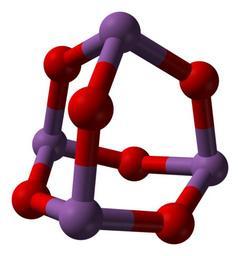 | Keywords: Sb4O6-molecule-from-senarmontite-xtal-2004-3D-balls-B.png Ball-and-stick model of an Sb<sub>4</sub>O<sub>6</sub> molecule from the crystal structure the mineral senarmontite a form of antimony trioxide Sb<sub>2</sub>O<sub>3</sub> X-ray crystallographic data from http //www rsc org/Publishing/Journals/DT/article asp doi b312550e Dalton Trans 2004 23-29 Model constructed in http //www crystalmaker com/ CrystalMaker 8 1 Image generated in http //accelrys com/products/discovery-studio/visualization/discovery-studio-visualizer html Accelrys DS Visualizer Own 2009-06-03 Ben Mills Benjah-bmm27 Images by Ben Mills Senarmontite |