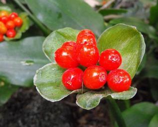 Keywords: Scadoxuspuniceus.jpg en Fruits of Scadoxus puniceus in the Botanical Building at Balboa Park San Diego California USA Identified by sign as Haemanthus puniceus own Stickpen 2010-01-27 public domain Unidentified Haemanthus