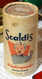 Keywords: Scaldis kinderpoeder busje pic.JPG Old product that is not sold/produced anymore own 2013-11-03 14 14 51 Alf van Beem CC-zero Trademarked Talcum powder Nostalgia by Alf van Beem