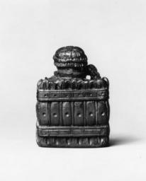 | Keywords: Scandinavian - Chess Rook - Walters 711157 - Back.jpg In medieval Scandinavia the chess rook took the form of a watchman with his back to a fence instead of a medieval castle watchtower In this example the watchman blows his horn to signal trouble holds a sword and is accompanied at either side by two smaller military figures with shields It bears the signature H on its base Six other examples from the same workshop have survived including a king a queen and three rooks now in collections in Paris Musée National du Moyen Age London British Museum and Copenhagen Royal Collection century 14 Medieval walrus ivory with brown stain cm 6 2 4 4 accession number 71 1157 9815 Found in London on the edge of the Thames at Puddle Dock Blackfriars 1962 Sale London Sotheby's April 9 1973 lot 14 Mrs John Hunt Dublin Walters Art Museum 1977 by purchase Museum purchase 1977 Signature Inscribed on base H place of origin Scandinavia Walters Art Museum license Medieval ivory in the Walters Art Museum Art of Scandinavia Chess rooks 14th-century chess |