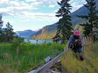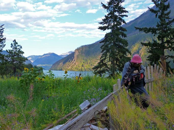 Keywords: scarecrow landscape flowers plants fence lake mountains nature