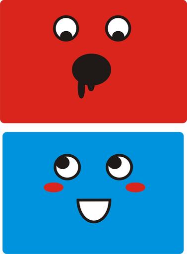 Keywords: scared happy look smile drool mouth joy below top red blue face rectangle