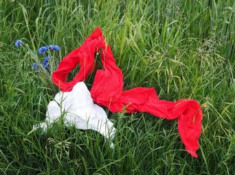 Keywords: scarf scarves red clothing garments colorful meadow romantic idyll