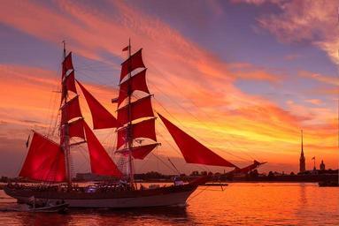 Keywords: scarlet sails neva evening salute holiday russia st petersburg russia sky clouds quay river ship the peter and paul fortress