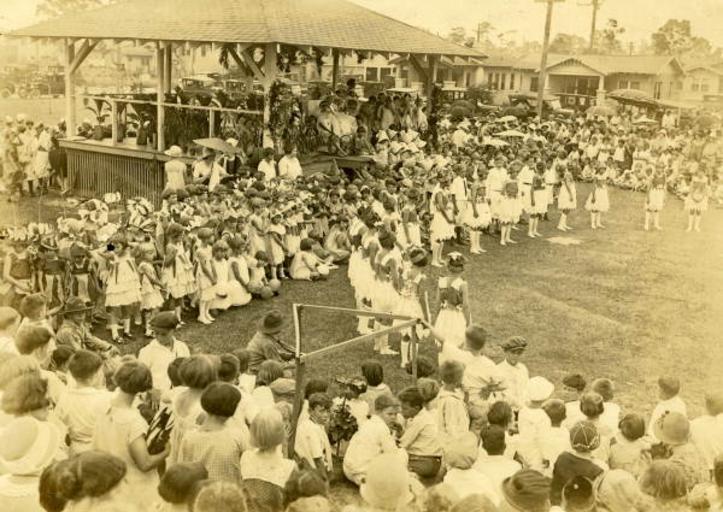 | Keywords: florida state library and archives of florida statelibraryandarchivesofflorida orange bowl orangebowl parades festivals miami moore park moorepark crowd monochrome Local call number: PR76500 Title: Scene From the First "Orange Bowl" Festival at Moore Park in Miami, Florida Physical descrip: 1 photoprint: b&w; 7 x 9 in. Date: January 2, 1933 Series Title: Print Collections General Note: In 1932, George E. Hussey, official greeter of Miami, organized the first Palm Festival Game. The Festival of Palms Bowl game was held twice, following the 1932 and 1933 seasons. Following the success of these games, backers organized another game for New Year's Day 1935 under the Orange Bowl name. The two Festival of Palms Bowl games were not recognized as bowl games by the NCAA due to the fact that one team, the University of Miami, was guaranteed a berth regardless of record. The 1935 and subsequent Orange Bowl games however were recognized as official bowl games since neither participating team was automatically granted a berth regardless of record. Repository: State Library and Archives of Florida, 500 S. Bronough St., Tallahassee, FL 32399-0250 USA. Contact: 850.245.6700. Archives@dos.state.fl.us Persistent URL: www.floridamemory.com/items/show/17827 Local call number: PR76500 Title: Scene From the First "Orange Bowl" Festival at Moore Park in Miami, Florida Physical descrip: 1 photoprint: b&w; 7 x 9 in. Date: January 2, 1933 Series Title: Print Collections General Note: In 1932, George E. Hussey, official greeter of Miami, organized the first Palm Festival Game. The Festival of Palms Bowl game was held twice, following the 1932 and 1933 seasons. Following the success of these games, backers organized another game for New Year's Day 1935 under the Orange Bowl name. The two Festival of Palms Bowl games were not recognized as bowl games by the NCAA due to the fact that one team, the University of Miami, was guaranteed a berth regardless of record. The 1935 and subsequent Orange Bowl games however were recognized as official bowl games since neither participating team was automatically granted a berth regardless of record. Repository: State Library and Archives of Florida, 500 S. Bronough St., Tallahassee, FL 32399-0250 USA. Contact: 850.245.6700. Archives@dos.state.fl.us Persistent URL: www.floridamemory.com/items/show/17827 |