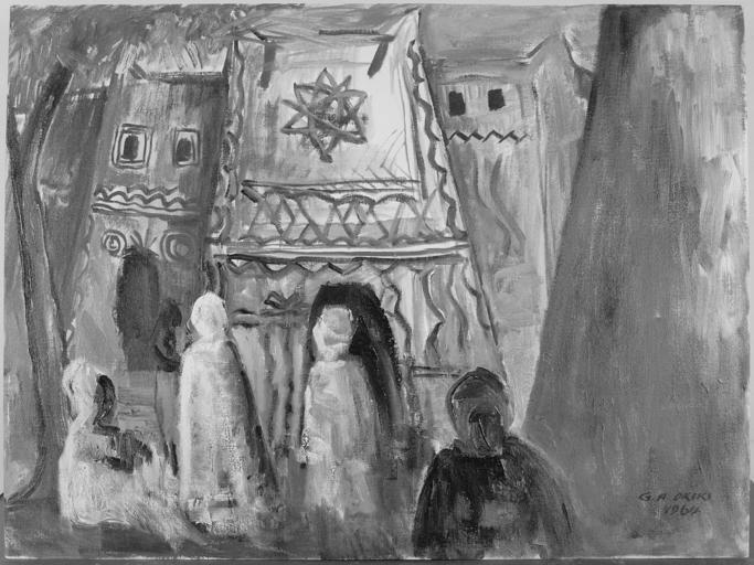 | Keywords: "Scene, Northern Nigeria", 1964 - NARA - 558969.jpg  Scope and content General notes Oil 558969 Local identifier H-HN-AA-9G-30 Harmon Foundation Okiki Godfrey A Nigeria Still Picture Records Section Special Media Archives Services Division NWCS-S National Archives at College Park 8601 Adelphi Road College Park MD 20740-6001 1964 Record group Collection H Harmon Foundation Collection 1922 - 1967 Record group ARC 862 Artworks by Negro Artists compiled 1922 - 1967 Series ARC 558790 File unit File unit ARC Variant control numbers NAIL Control Number NWDNS-200-HN-AA-9G-30<br /> NAIL Control Number NWDNS-H-HN-AA-9G-30<br /> Select List Identifier AFRICAN ART 178 Other versions <gallery> File Scene _Northern_Nigeria _1964_-_NARA_-_558969 tif tif </gallery> NARA-cooperation PD-USGov 20th-century oil paintings Art of Nigeria 1964 paintings Godfrey A Okiki Black and white reproductions of paintings in color |
