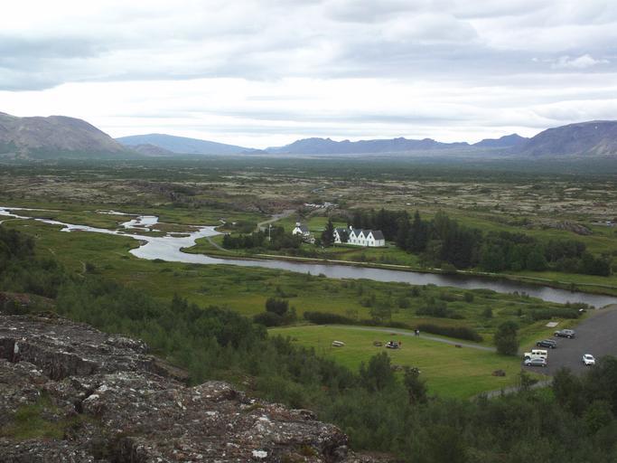 Keywords: Thingvellir village from above.JPG en Þingvellir village from the viewing platform including the Þingvalla church 2014-08-09 20 22 59 own Ypsilon from Finland cc-zero Uploaded with UploadWizard Þingvallakirkja