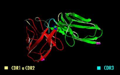 | Keywords: ScFv-rotation.gif Animation showing a 3D model of single chain antibody scFV The complementatity determining regions CDRs are highlighted Author Tomas Moravec 2005-10-28 own assumed Xmort~commonswiki animated ribbon diagrams Antibodies Animated GIF Animations on black background |