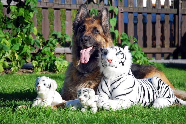 Keywords: schäfer dog dog old german german longhaired pointer tiger white plush stuffed animal garden green teddy bear