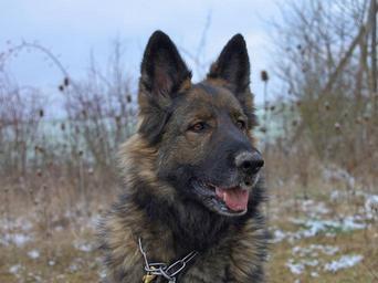 Keywords: schäfer dog bitch old grey snout grey snout friend protector vigilant walk cold winter blue good dog view eyes brown eyes pet german longhaired pointer field