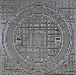 Keywords: Schachtdeckel comune de firenze fognatura.JPG Schachtdeckel in Florenz own 2007-05-12 User Abubiju Manhole covers in Florence Coats of arms on manhole covers