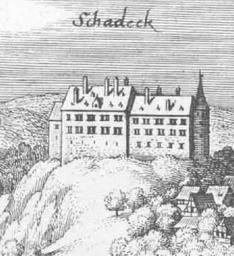 | Keywords: Schadeck De Merian Hassiae.jpg de Dies ist ein Scan des historischen Dokuments Titel Schadeck - Auszug aus der Topographia Hassiae Sprache Deutsch en This is a scan of the historical document Title Schadeck - Topographia Hassiae language german de Scan eines Orginal Buchs durch http //www digitalis uni-koeln de/digitaletexte html en scan of the historical book by http //www digitalis uni-koeln de/digitaletexte html 1655 Matthäus Merian public domain PD-old-100 Burg Schadeck Merian Hassiae |
